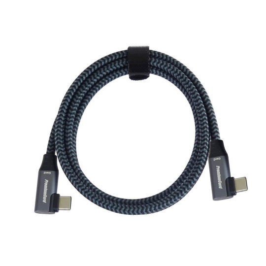 PremiumCord USB-C 2x zahnutý 90° kábel ( USB 3.2 GEN 2x2, 5A, 100W, 20Gbit/s ) hliníkové krytky konektorov, bavlnený opletenie, 3m