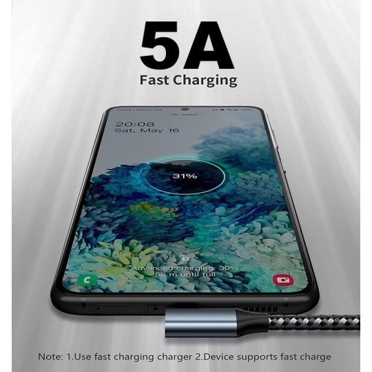 - Kábel je vybavený E-Mark čipom – riadiacou elektronikou, ktorá zabezpečuje komunikáciu pripojených zariadení. Takto je možné jednoduchšie dosiahnuť maximálnu možnú rýchlosť prenosu dát a nabíjania.