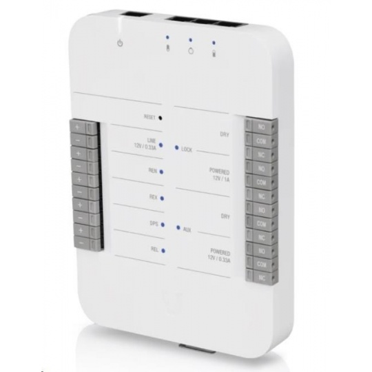 rozbočovač UniFi Access Hub je základným komponentom pri inštalácii prístupového systému UniFi. UniFi Access Hub je inteligentný jednodverový IP kontrolér, ktorý je kompatibilný s väčšinou elektrických zámkov, magnetických zámkov a rôznym 12 V príslušenstvom, ako sú pohybové senzory, tlačidlá a alarmy. Inštalácia je veľmi rýchla a jednoduchá a ponúka jednoduchú správu používateľov, návštevníkov, plánov a úrovní alebo prístupových oprávnení prostredníctvom UniFi Access Controller. Rozbočovač je napájaný prostredníctvom PoE, ktoré nie je súčasťou dodávky.
