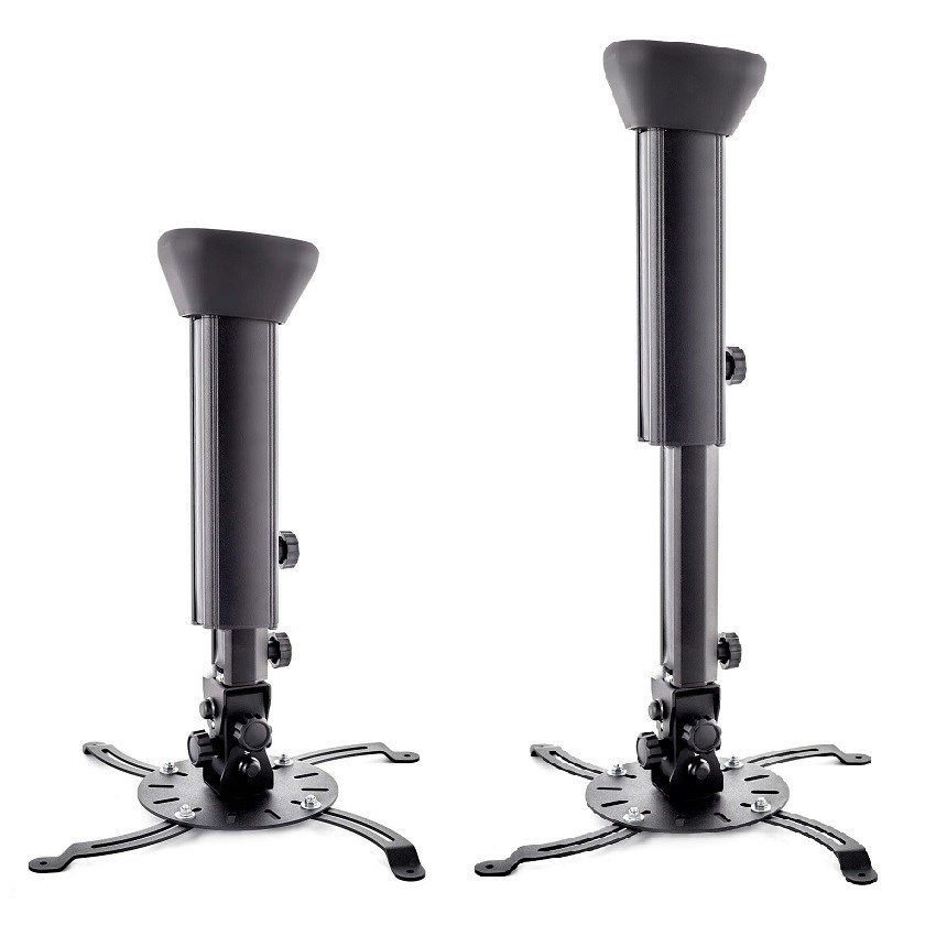 Profesionálny dizajnový stropný držiak na projektor EDBAK PMV100 Stropný držiak na zavesenie projektora s hmotnosťou do 15kg, najvyššia kvalita, dizajn, nastaviteľnosť 45-65cm Nie vždy je možné použiť obyčajný stropný držiak na projektory, niekedy je potrebné použiť držiaky najvyššej kvality a krásneho dizajnu. My vám takéto držiaky na projektory ponúkame. Komplexná rada profesionálnych stropných držiakov na projektory v nádhernom dizajnovom prevedení. Držiaky sú úplne nastaviteľné, vhodné pre 99% dostupných projektorov a dataprojektorov. Farba čierna alebo biela. Záruka 5 rokov. Ak vám záleží na dizajne rovnako ako na kvalite, ste na správnej stránke. Profesionálny dĺžkovo nastaviteľný otáčací a sklopný stropný držiak na projektory Edbak PMV100 Technické údaje: nosnosť 15kg univerzálny držiak na uchytenie 99% dostupných projektorov na projektory s 3 alebo 4 otvormi pre uchytenie rozteč otvorov pre uchytenie v rozmedzí 50-490mm dĺžkové nastavenie 450mm až 650mm otáčanie do strán +/- 360° náklon do strán +/- 25° náklon nahor a nadol +/- 25° korekcia roviny obrazu korekcia nerovnosti stropu +/- 7,5° zaistenie v požadovanej polohe systém pre skryté vedenie káblov najvyššia kvalita - profesionálne prevedenie nádherný dizajn biele alebo čierne prevedenie záruka 5 rokov Stropné a nástenné držiaky na projektory najvyššej kvality, profesionálne Edbak PMV100 Na stropný držiak s nastavením dľžky 45-65cm EDBAK PMV100 je možné uchytiť všetky projektory, ktoré majú 3 alebo 4 otvory so závitom s roztečou 50mm až 490mm. Profesionálne stropné alebo nástenné držiaky na projektory Edbak PMV100 Vďaka najvyššej kvalite a profesionálnemu prevedeniu sú držiaky EDBAK rady PMV vhodné naozaj kamkoľvek.