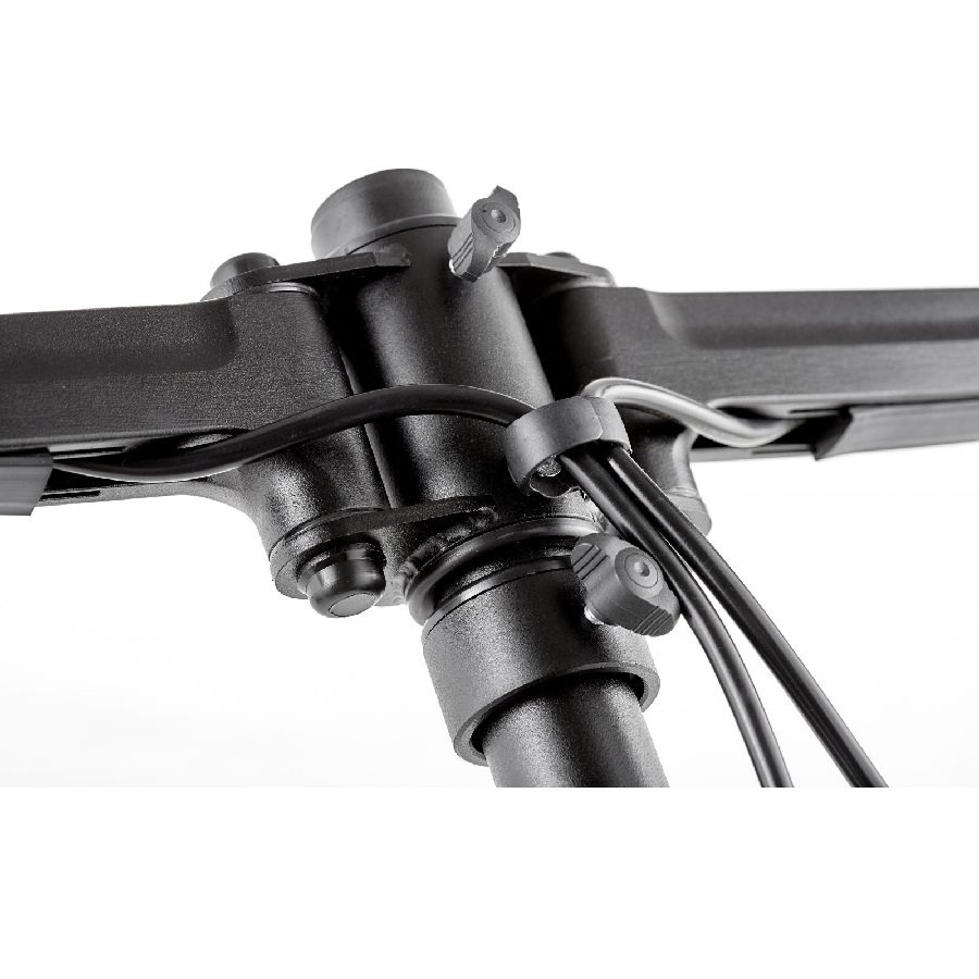 Profesionálny stolný držiak 4 monitorov EDBAK DM141 Profesionálny kancelársky držiak pre náročnejších, plne polohovateľný držiak na 4 monitory 17-29", VESA 75x75 a 100x100, nosnosť 40kg Aj najnáročnejší zákazníci si u nás prídu na svoje - ponúkame Vám špičkový dizajnový držiak na 4 monitory s uhlopriečkou 17-29". Výškové polohovanie, nezávislé dĺžkové nastavenie, otáčanie do strán, náklon. Systém pre vedenie káblov. 2 typy stolového uchytenia - na okraj alebo do priestoru. Farebné prevedenie čierne, záruka 10 rokov. Profesionálny stolný držiak na 4 monitory Edbak DM141 Technické údaje: nosnosť 40kg na monitory 19-29" podpora VESA štandardov 75x75 a 100x100 výškové polohovanie max. 720mm náklon monitoru +/-60° otáčanie do strán +/-90° rotácia monitorov +/-360° nastavenie vzdialenosti monitora od stolového uchytenia systém pre vedenie káblov 2 stolové uchyty - na okraj alebo do priestoru stolovej dosky farebné prevedenie čierne profesionálna kvalita, krásny dizajn záruka 10 rokov Držiaky na 4 monitory EDBAK DM141 podporujú VESA štandardy: VESA 75x75 VESA 100x100
