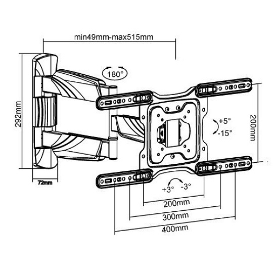 Prvotriedny držiak na TV Fiber Mounts Excelent Špičkový nástenný držiak na TV 23-60", otočný až +/-90°, sklopný +5°/-15°, výsuvný 49-515mm, VESA 75x75 až 400x400, nosnosť 35kg Hľadáte kvalitný, pekný a cenovo dostupný držiak na televíziu? Presne tieto vlastnosti má držiak Tv Fiber Mounts Excelent, ktorý Vás prekvapí krásnym dizajnom, ktorý ukrýva naozaj kvalitnú veľmi pevnú a bezpečnú konštrukciu pre spoľahlivé zaveste televízora. Držiak Fiber Mounts Excelent je ideálny na zaveste televízií s uhlopriečkou 23-60", výborne zvláda aj maximálne zaťaženie 35kg bez provešenia ramena aj pri maximálnom vysunutí 515mm. Držiak umožňuje otáčanie televízie na obe strany, jej naklápenie nadol alebo nahor, nastavenie roviny obrazovky. Konštrukcia je osadená dizajnovými krytkami pre skryté vedenie káblov. Držiak má peknú čiernu farbu. V balení nájdete inštalačný materiál. Záruka 5 rokov. Spoľahlivý, bezpečný, ľahko polohovateľný držiak na televízie, ktorý sa vyznačuje skvelou kvalitou a charakteristickým názvom Fiber Mounts Excelent Technické údaje: nosnosť 35kg podporuje VESA štandardy 75x75 až 400x400 ideálny na zaveste televízorov s uhlopriečkou 23-60" výsuvný, nastavenie vzdialenosti od steny 49mm až 515mm naklápanie televízie nadol až o 15° alebo nahor až o 5° otáčanie televízie do strán +/- 90° (podľa veľkosti TV) korekcia roviny obrazovky +/- 3° veľmi pevná a bezpečná konštrukcia spoľahlivé zaveste televízie so zabezpečením proti vysadeniu dizajnové krytky konštrukcie s funkciou skrytého vedenia káblov veľmi pekný celkový vzhľad držiaka ľahká inštalácia, súčasťou balenia je montážny materiál farebné prevedenie čierne záruka 5 rokov Systém pre vedenie káblov na televíznom držiaku Fiber Mounts Excelent Televízny držiak Fiber Mounts Excelent podporuje VESA štandardy: VESA 75x75 VESA 100x100 VESA 200x100 VESA 200x200 VESA 300x200 VESA 300x300 VESA 400x200 VESA 400x300 VESA 400x400 Držiak na televízie Fiber Mounts Excelent je vhodný pre spoľahlivé a bezpečné zaveste VŠETKÝCH typov, značiek a uhlopriečok televízií, ktoré majú hmotnosť maximálne 35kg a ktoré podporujú ktorýkoľvek z vyššie uvedených VESA štandardov. Na veľkosti televízie nezáleží. Držiak Fiber Mounts Excelent umožňuje otáčanie kolmo na stenu pri televízoroch s šírkou maximálne 92cm. Televízory s väčšou šírkou (ne uhlopriečka) otočíte o niečo menej.