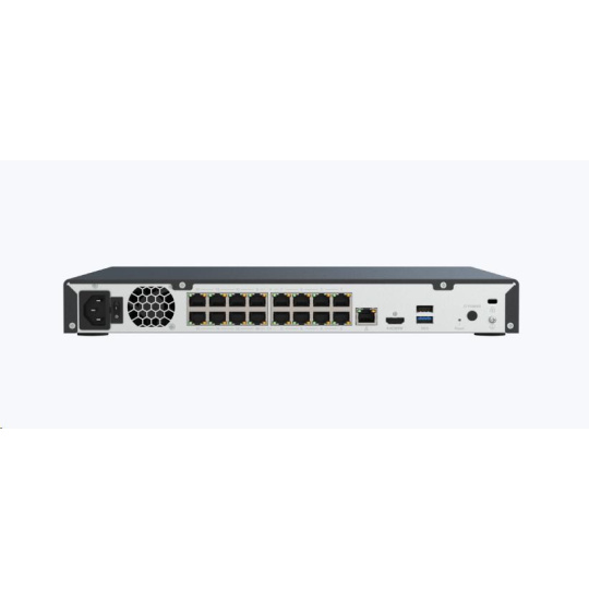 - Jednoduchá inštalácia, rýchle nasadenie: Jeho 16 portov PoE+ priamo napája IP kamery a prenáša napájanie aj dáta prostredníctvom jediného ethernetového kábla, čím odpadá nutnosť zložitých káblových riešení.