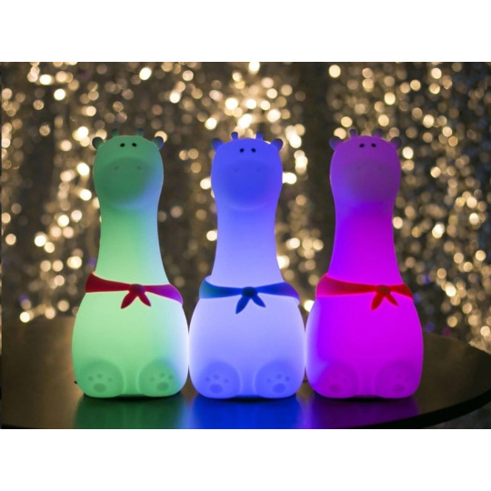 Detská lampička v podobe zvieracieho kamaráta, žirafy, je ideálnou prvou lampičkou pre dievčatká aj chlapcov. Lampička pre deti vyrobená z mäkkého, certifikovaného a zdravotne nezávadného silikónu bez BPA je bezpečným svietidlom na nočný stolík i prenosnou lampičkou, ktorá deťom posvieti pri nočnej návšteve toalety. Svietiaca žirafa je skvelou spoločníčkou pri nočnom kojení aj usínaní. Na lampičku stačí poklepať a okamžite sa rozsvieti, zhasne alebo zmení farbu svetla. Ovládanie je úplne jednoduché a zvládnu ho aj deti. Sami si tak môžu vybrať, aké svetlo (na výber zo 7 farieb) bude súčasťou uspávacieho alebo zaspávacieho ceremoniálu.