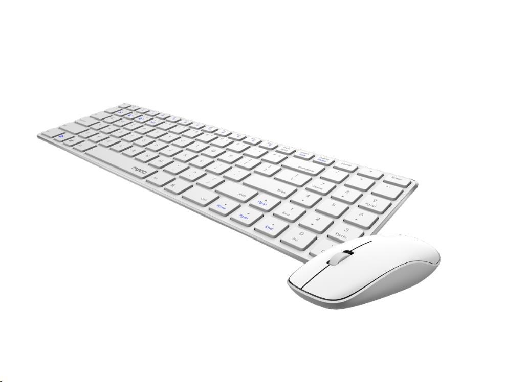 Súprava klávesnice a myši RAPOO 9300M, bezdrôtová, viacrežimová tenká myš, ultratenká klávesnica, biela