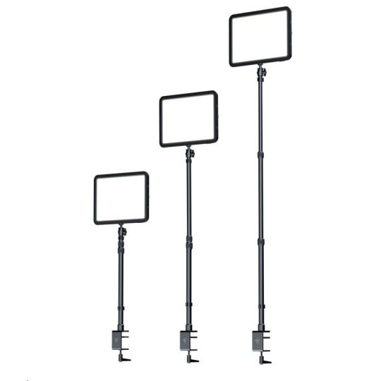 | hmotnosť | 360 mm x 260 mm (len svetlo), min. 553 mm / max. 1350 mm (tyč + adaptér + stolová svorka) |