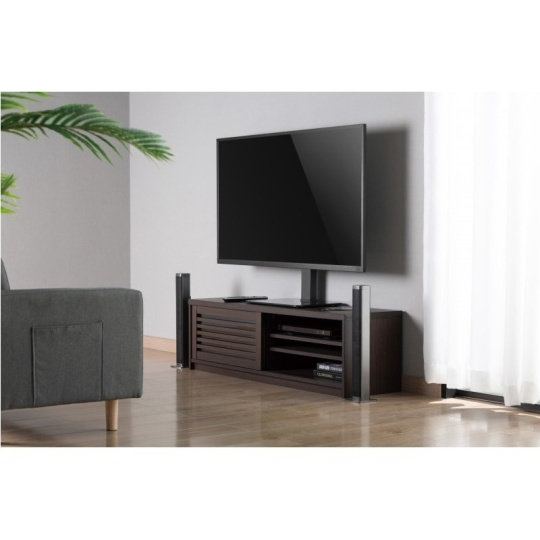 Televízny stojan na nábytok pre veľké TV s uhlopriečkou 32"- 55" (81-140cm) a hmotnosťou maximálne 40kg. Stredový nosný profil na sklenenej ploche, výška vrátane TV 142,5-152,5cm, držák vertikálne výklopný +0°/-35° a otočný +35°/-35°, rozmery 43x28x67cm, materiál sklo/oceľ, farba čierna. Uchytenie VESA: 100x200, 200x100, 200x200, 300x200, 300x300, 400x200, 400x400.