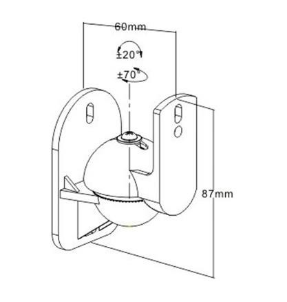 Držiaky na reproduktory, 2ks - vzdialenosť od steny 6cm, výška držiaka 7cm, reproduktor je možné horizontálne otáčať o 140° a nakloniť +/-20°, maximálne zaťaženie 3,5 kg, farba čierna.