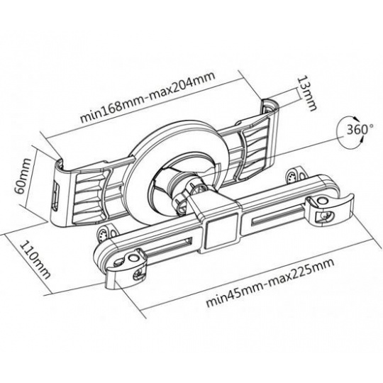 Držiak na 7-11" tablety v horizontálnej a vertikálnej polohe v aute pod opierkou hlavy. Pre cestujúcich na zadných sedadlách. Upevnenie z dvoch strán, otočenie tabletu o 360°, nastaviteľná montážna šírka 45-225 mm, plast, biela...