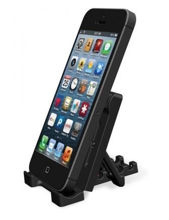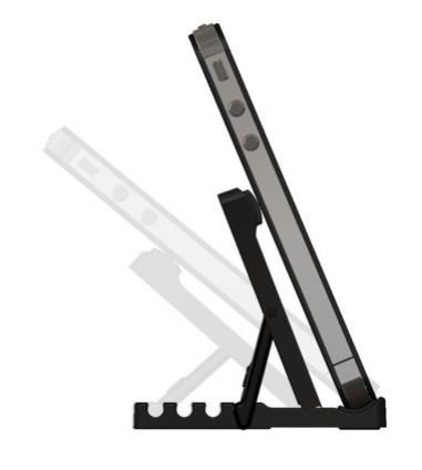 Stojan pre inteligentné dotykové telefóny v horizontálnej a vertikálnej polohe na stole. 5 nastaviteľných uhlov, skladací mechanizmus na jednoduchú prepravu, telefón položený na spodnej hrane, plastové vyhotovenie, čierna farba...