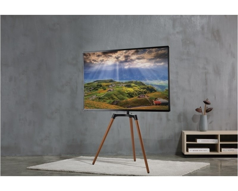 Unikátny televízny stolík na Plasma a LCD TV s uhlopriečkou 50"- 65" (127-165cm) a hmotnosťou maximálne 35kg. Dizajnová kombinácia čiernej kovovej konštrukcie + 3x drevené nohy (orech). Precízne tvarované a vedené káble pre maximálny estetický zážitok. Upevnenie VESA: 200x200, 300x200, 300x300, 400x200, 400x400.