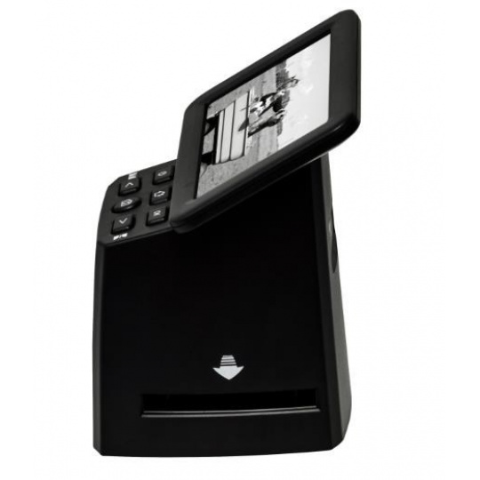 15,3Mpx 1/2,3" skener filmov CMOS s 5" farebným monitorom TFT LCD a slotom SD-SDXC max. 128 GB - môže pracovať bez PC. Rýchle skenovanie za 1 s, 3200 dpi, interpolácia na 22 Mpx , PC/MAC, USB2. Súčasťou balenia je napájací zdroj 5 V/1 A, kábel USB, 2x držiak a čistiaci nástroj. Automatické alebo manuálne nastavenie expozície a farieb. Manuálny posun 4 denníkových snímok (hrúbka max. 3,2 mm) alebo 6 políčok farebného a čiernobieleho filmu (negatív/pozitív) v priložených držiakoch. Farebný monitor LCD a slot SD umožňujú veľmi jednoduché skenovanie bez potreby pripojenia k počítaču.