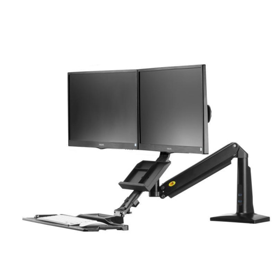 Profesionálna pracovná stanica pre dva monitory 17-27" s policou na klávesnicu a myš, ergonomický držiak pre rýchlu zmenu pre prácu vsed E alebo vstoje, plná polohovateľnosť, VESA 75x75 a 100x100, plynová pružina, nosnosť 15kg