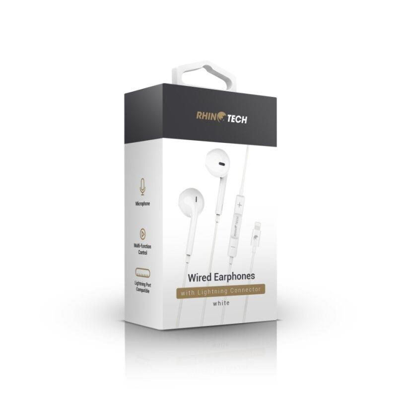 RhinoTech drátová sluchátka s Lightning konektorem bílá