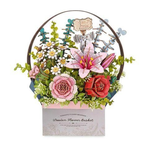 RoboTime 3D dřevěná skládačka Košík s květinami