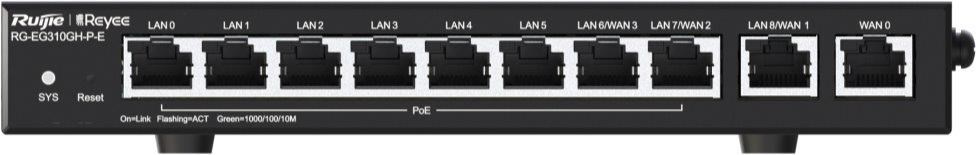 Popis produktu Ruijie RG-EG310GH-P-E je kabelový Gigabitový router s PoE, dostatečným VPN výkonem pro obsloužení poboček a vzdáleně pracujících pracovníků v rámci firmy. Bezpečný a spolehlivý router s vlastním webovým managementem, možností správy přes Ruijie Cloud odkudkoliv, blokování obsahu podle typu aplikace, inteligentní Multi-WAN load balancing s možností využít až 4 WAN porty zároveň. Router nabízí 1 Gigabitovými WAN port, 6x Gigabit LAN, 3 Gigabitový LAN/WAN porty, celkový výkon v NATu 1.5 Gbps a 802.3af/at PoE na prvních 8 portech s celkovým PoE budgetem 130W. Router pro přístup do lokální sítě umožňuje i několik možností VPN serverů a to konkrétně: IPsec, PPTP, L2TP a OpenVPN. Limity VPN • IPsec: 230 Mbps, max. 64 tunelů • L2TP: 640 Mbps, max. 64 tunelů • OpenVPN: 100 Mbps, max. 64 tunelů Obsah balení • Zařízení • Napájecí adaptér 52V / 2.4A • Napájecí kabel Technické parametry Konektory a rozhraní Rychlosti WAN:(1) 10/100/1000Mbps Možnost více WAN:Ano Rychlost LAN:(6) 10/100/1000Mbps + (3) 10/100/1000Mbps LAN/WAN Gigabit LAN:Ano Napájení Typ napájení:DC konektor Typy PoE:PoE-Out (pouze) Podporované PoE-Out standardy:802.3af, 802.3at Počet PoE Out portů:8 PoE budget [W]:110 Max. spotřeba energie [W]:130 Napájení přes konektor/svorkovnici:54V / 2,4A Fyzické charakteristiky Provedení:Desktop Ventilátory:Bez ventilátoru Šasi:Kovové Tlačítka:Reset Provozní teplota [°C]:0 až 40 Šířka [mm]:202 Výška [mm]:28 Hloubka [mm]:108 Hardware Frekvence CPU [MHz]:1350 Počet CPU jader:2 Obecné Propustnost NAT [Mb/s]:1500 Propustnost VPN IPsec VPN [Mb/s]:230 Software Podporované VPN:PPTP, L2TP, IPSec, OpenVPN Web management:Ano Management:Webové rozhraní, Ruijie cloud Podpora IPv6:Ano Výchozí IP adresa:192.168.110.1 Výchozí jméno a heslo:Nastavuje se při prvním spuštění.