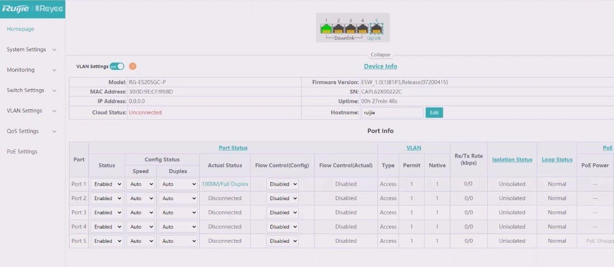 Reyee RG-ES205GC-P Smart mananged PoE switch, 4x PoE