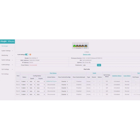 Popis produktu Inteligentní cloudově i přes webové rozhraní spravovatelný smart desktop PoE switch RG-ES210GC-LP od značky Ruijie, nabízí cenově efektivní řešení s 10 Gigabit LAN porty z čehož 8 portů podporuje 802.3af/at PoE s celkovým PoE budgetem 70W. Tento kompaktní přepínač je ideální pro síťové aplikace, které vyžadují výkon a spolehlivost. Co se výčtu funkcí týče, switch nabízí tichý chod bez ventilátorů, podporu až 16 VLAN, DHCP snooping, testování kabelu, ochranou proti zakruhování a v rámci PoE možnost použití až na vzdálenost 250m při snížení linkové rychlosti na 10 Mbps. Klíčové vlastnosti • 10x 10/100/1000 Mbps LAN porty • 8x 802.3af/at PoE - max. 30W/port, PoE budget 70W • Kvalitní provedení, kovové šasi • Bez venilátoru • Nízká spotřeba - max. 10 W • Správa přes webové rozhraní a cloud • Celoživotní správa na Ruijie Cloud kdykoli a kdekoli • Rozpoznávání IP kamer - jedinečná hodnota pro CCTV síť • Automatická prevence proti zakruhování • Podpora Long Range PoE na vzdálenost 250m Obsah balení • Zařízení • Napájecí adaptér 54V/1.5A Technické parametry Konektory a rozhraní Rychlost LAN:(10) 10/100/1000Mbps Napájení Typ napájení:DC konektor Typy PoE:PoE-Out (pouze) Podporované PoE-Out standardy:802.3af, 802.3at Počet PoE Out portů:8 PoE budget [W]:70 PoE na vzdálenost až 250m:Ano Max. spotřeba energie [W]:10 Napájení přes konektor/svorkovnici:54V / 1,5A Fyzické charakteristiky Provedení:Desktop Ventilátory:Bez ventilátoru Šasi:Kovové Tlačítka:Reset Provozní teplota [°C]:0 až 40 Šířka [mm]:202 Výška [mm]:28 Hloubka [mm]:108 Obecné Rychlost přepínání [Gbps]:20 Tabulka MAC adres:4000 Rychlost předávání paketů [Mpps]:14,9 Software Web management:Ano Management:Webové rozhraní, Ruijie cloud Funkce:VLAN, DHCP snooping Výchozí IP adresa:10.44.77.200 Výchozí jméno a heslo:Nastavuje se při prvním spuštění.