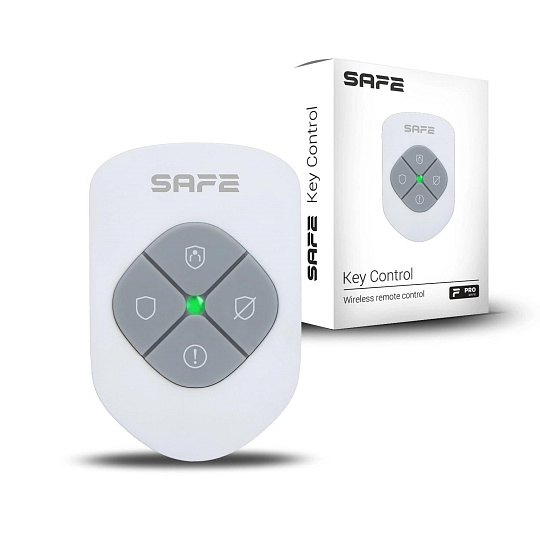 Key Control je praktický bezdrátový dálkový ovladač, který si snadno připnete na klíče, vložíte do kapsy a máte jej tak vždy po ruce. Toto kompaktní a univerzální zařízení je vybaveno třemi tlačítky pro jednoduché ovládání klíčových funkcí zabezpečovacího systému SAFE – částečné aktivace, plné aktivace nebo deaktivace. Navíc obsahuje jedno volně programovatelné tlačítko, které lze využít například k vyhlášení SOS tísňového poplachu, spuštění předem nastavené operace nebo aktivaci automatizačního scénáře.
