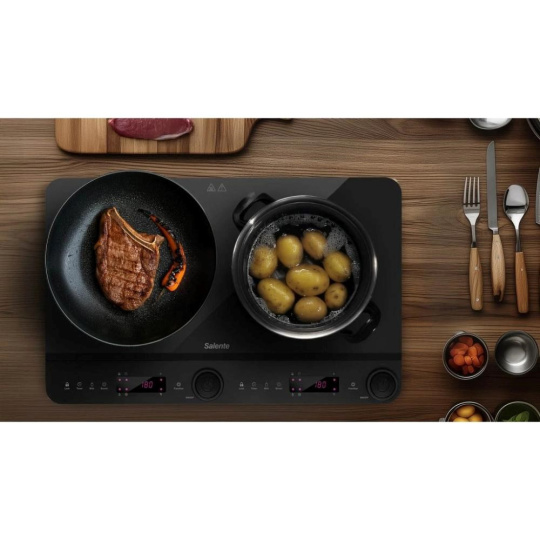 Indukčný varič Salente InductPro2 je perfektnou voľbou pre tých, ktorí chcú variť efektívne, úsporne a bezpečne. Je ľahký, kompaktný a ľahko prenosný, takže sa hodí nielen do bytu, ale aj na chatu, do kancelárie či študentského bytu. Pripojte ho do zásuvky, položte naň svoj obľúbený hrniec a nechajte sa pohltiť chuťami, ktoré vytvoríte – jednoducho, rýchlo, úsporne a hlavne s radosťou.