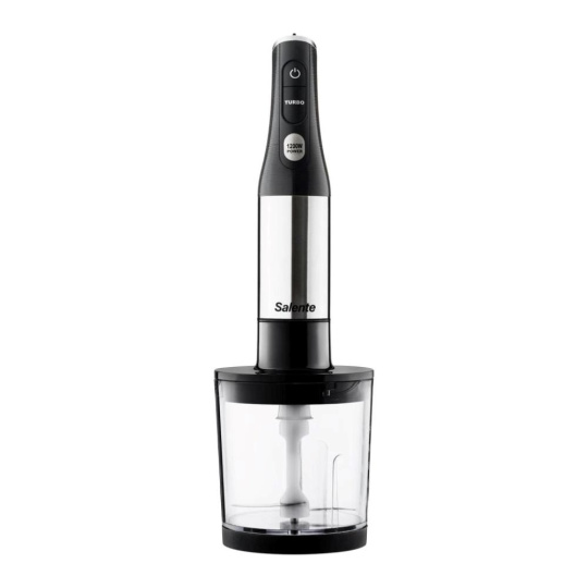 Salente Mixxo prichádza do vašej kuchyne aj s bohatým príslušenstvom: môžete využívať šľahaciu nadstavec s nerezovou metličkou, mixovaciu nádobu o objeme 600 ml (s odmerkami po 100 ml) a tiež sekáč s objemom 500 ml, ktorý je vybavený nerezovými sekacími nožmi a silikónovou protišmyšľovou podložkou. Zakúpením tohto všestranného mixéru jednoducho získate kompletné vybavenie, ktoré posunie vaše kulinárske čarovanie o úroveň vyššie.