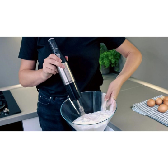 - Špeciálna kombinácia ergonómie a drsnej povrchovej úpravy úchopovej časti mixéra zabezpečuje pevnú úchop aj v každej situácii