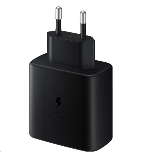 Samsung cestovná nabíjačka do siete s maximálnym výkonom 45W, USB-C výstupom a USB-C káblom dlhým 1,8m.