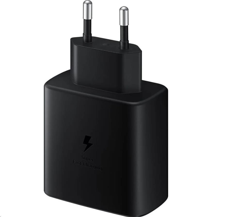 Samsung cestovná nabíjačka do siete s maximálnym výkonom 45W, USB-C výstupom a USB-C káblom dlhým 1,8m.