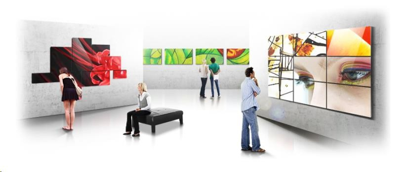 Toto riešenie poskytuje úplnú slobodu pri navrhovaní a formovaní jednotlivých obrazoviek do formálnych alebo neformálnych tvarov, ktoré môžete ľubovoľne podľa potreby modelovať. Pri vytváraní videostien je možné kombinovať ľubovoľné druhy veľkoplošných displejov Samsung bez ohľadu na model, veľkosť, rozlíšenie alebo šírku rámika.