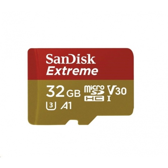 Karta SanDisk MicroSDHC 32 GB Extreme (100 MB/s, Class 10 UHS-I V30, pre akčné kamery) + adaptér