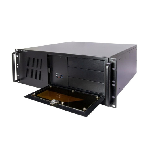 IPC 4U-450 je vysokokvalitná serverová skriňa určená na montáž do 19" racku. Skriňa je vyrobená z 1,2 mm hrubého plechu, ktorý sa v dnešnej dobe vyskytuje len zriedkavo. Predný panel je zakrytý uzamykateľnými kovovými výklopnými dvierkami. Keď je panel zatvorený, cez priehľadnú časť dvierok sú viditeľné len kontrolky LED. Po otvorení dverí sú k dispozícii ostatné ovládacie prvky.