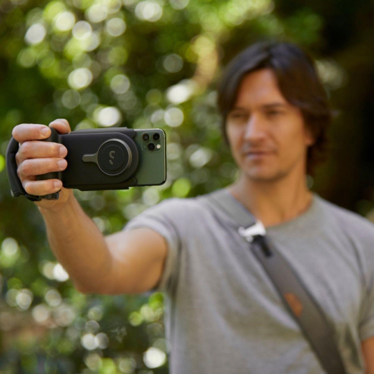 Stáva sa vám, že na konci dňa plného nahrávania videa a fotografií cítite napätie v zápästí? Koľkokoľvek je telefón praktickým pomocníkom, jeho tvar z ergonomického hľadiska jednoducho nie je ideálny. A to najmä v porovnaní s zrkadlovkou. Práve tento problém prekonáva sada ProGrip od ShiftCam - sada, vďaka ktorej získate oveľa pohodlnejšie a bezpečnejšie držanie vášho smartphonu. Presný tvar a výber materiálov je dotažený do najmenších detailov. Nechýba tak opierka pre palec a ergonomické zaoblenie, aby bol tlak vyvíjaný vašou dlánou rovnomerne rozložený. Odolná povrchová úprava rukoväte zabraňuje jej ulepeniu a opotrebeniu v priebehu času. Vysoko kvalitný gumený potah je protisklzový, odolný voči potu a zároveň mäkký na dotyk.Pripravená bezdrôtová powerbanka aj stojanček v jednom