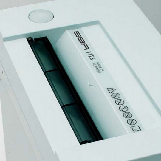 Energeticky účinný osobný skartovač vybavený radom najmodernejších technológií. Po 30 minútach v pohotovostnom režime sa napájanie úplne odpojí. energie zo siete. Automatické spustenie a zastavenie skartovania pomocou fotobunky. Reverzná prevádzka s automatickým vypnutím. Mimoriadne tichá prevádzka motora s výkonom 150 W, vybavená ochranou proti preťaženiu. Multifunkčné ovládacie tlačidlo EASY-Touch zabezpečuje jednoduché a intuitívne ovládanie, jednotlivé pracovné režimy sú indikované farebným svetlom. Mechanická bezpečnostná klapka v mieste vstupu drveného materiálu ako dodatočná ochrana proti preplneniu, ktorá zároveň pomáha zabrániť vstupu nevhodných materiálov (napr. väzby). Skartovacie valce z tvrdenej ocele, odolné voči kancelárskym sponkám a sponkám od spoločnosti HEAKATREZ. Moderný dizajn stroja sa spája s funkčnosťou. Po stranách skartovacej hlavy a koša sú priehlbiny na ľahké uchopenie skartovacej hlavy a následné vyprázdnenie koša. Pracovná šírka 220 mm. Strihá so šírkou rovného rezu 4 mm. Objem koša 20 l. Skartovací výkon až 11-13 listov/70g, 9-11 listov/80g papiera. Napájanie: 230 V / 50 Hz. Rozmery (V x Š x H): 428 × 345 × 213 mm. Hmotnosť: 6,5 kg Tento stroj získal certifikát "Modrý anjel" za ekologické výrobky...