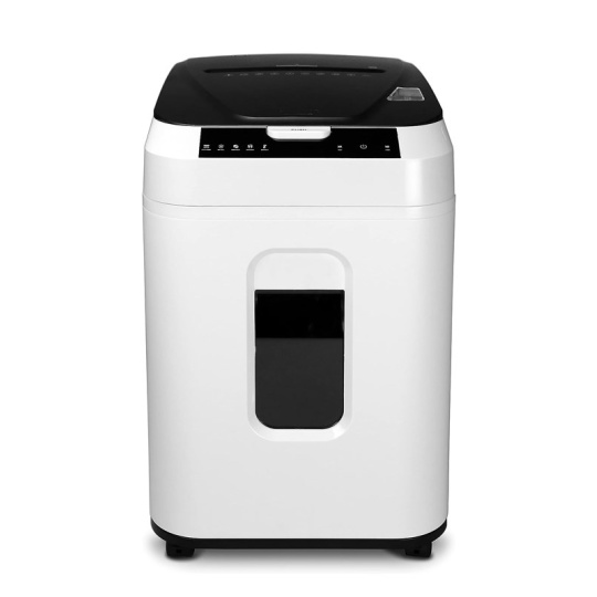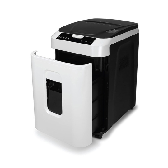 Atraktívne navrhnutá skartovačka pre stredne veľké kancelárie. Vhodný na skartovanie dokumentov so šírkou 240 mm. Stroj je štandardne vybavený automatickým systémom štart/stop, spätným chodom, tepelnou ochranou proti prehriatiu motora a alarmom preplneného koša. Príležitostne je možné skartovať sponky, kreditné karty a CD. Veľmi tichá prevádzka stroja. Nádoba na odpad s priehľadným okienkom. Prístup na CD a kreditnú kartu. Separovaný odpad. Pojazdné kolieska na ľahkú manipuláciu. Farba sivo-biela Hmotnosť (kg) 25 Kapacita (listy 70g/m2) 15 Objem koša (L) 38 Pracovná šírka (mm) 240 Príkon W/V 530/230 Rozmery (mm) 404 x 350 x 667 Rozmery rezu (mm) 2 x 10 Rýchlosť (mm/s) 50 Zošívačky, sponky, CD a platobné karty Funkcia štart/stop Áno Stupeň utajenia GDPR P5 - osobné údaje zamestnancov, majetok, mzda Typ rezu Krížový rez Záruka (mesiace) 24 Reverzácia Áno..