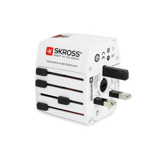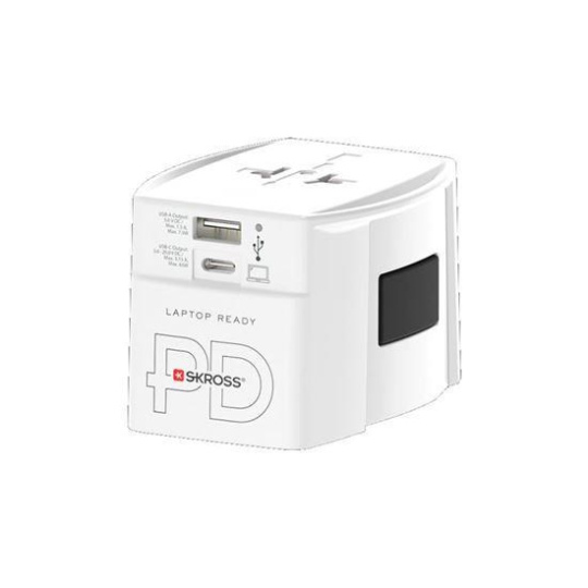 SKROSS MUV USB AC65PD umožňuje bezpečné pripojenie elektronických zariadení v viac ako 220 destináciách po celom svete. Vďaka integrovanému rýchlonabíjaču s portami USB-C a USB-A môžete súčasne napájať notebook, telefón, tablet, powerbanku alebo iné zariadenia. Navyše nemusíte kupovať USB-C kábel, je pribalený k adaptéru.