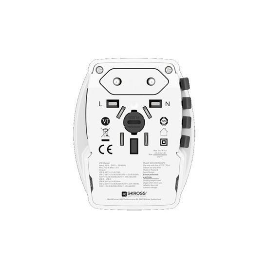 SKROSS MUV USB AC65PD umožňuje bezpečné pripojenie elektronických zariadení v viac ako 220 destináciách po celom svete. Vďaka integrovanému rýchlonabíjaču s portami USB-C a USB-A môžete súčasne napájať notebook, telefón, tablet, powerbanku alebo iné zariadenia. Navyše nemusíte kupovať USB-C kábel, je pribalený k adaptéru.