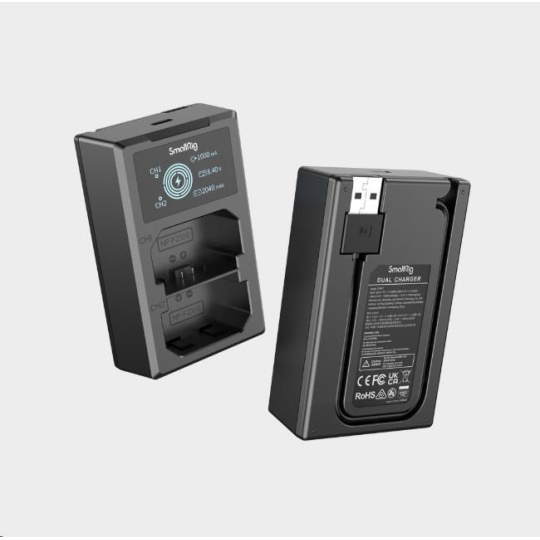 Dvojitá nabíjačka dokáže nabíjať dve batérie súčasne, pričom jej LCD displej zobrazuje stav nabíjania v reálnom čase.