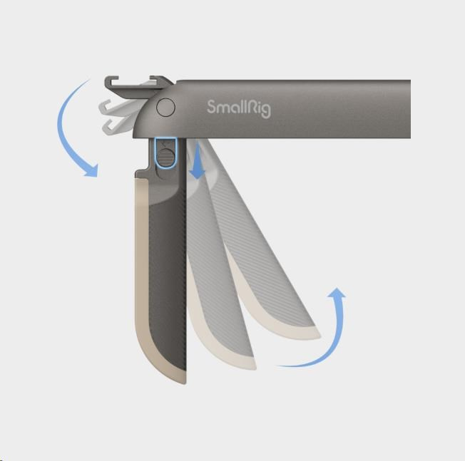 Jeho rukojeti, které lze uložit do křížového ramene, mají silikonové okraje pro pohodlnější uchopení a stejně jako držáky cold shoe je lze mechanicky uzamknout pro zvýšení solitérnosti a odolnosti.