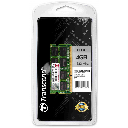 SODIMM DDR3L 4GB 1333MHz TRANSCEND 2Rx8 CL9, maloobchodný predaj