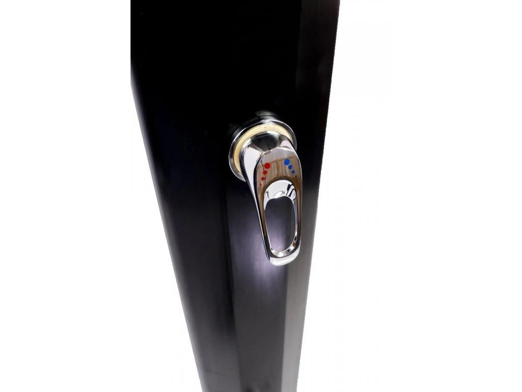 Solárna sprcha je ideálnym zdrojom teplej vody bez použitia elektriny. Voda je v solárnom zásobníku jednoducho ohrievaná slnkom až na 60°C. K tomu prispieva aj čierne prevedenie sprchy. Sprcha je vybavená miešacou pákovou batériou, aby ste si nastavili teplotu vody, ktorá vám bude vyhovovať.