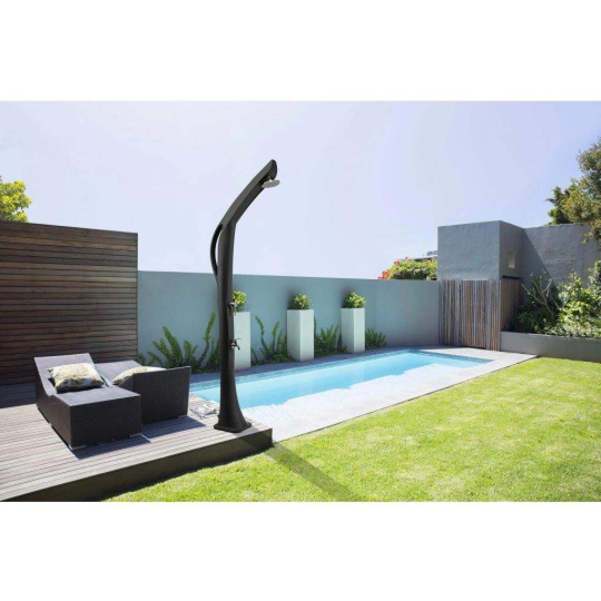 Solárna sprcha je ideálnym zdrojom teplej vody bez použitia elektriny. Voda sa v solárnom zásobníku jednoducho ohreje slnečným žiarením na teplotu až 60°C. K tomu prispieva aj čierne prevedenie sprchy. Sprcha je vybavená miešacou pákovou batériou, aby ste si mohli nastaviť teplotu vody podľa vašej požiadavky.