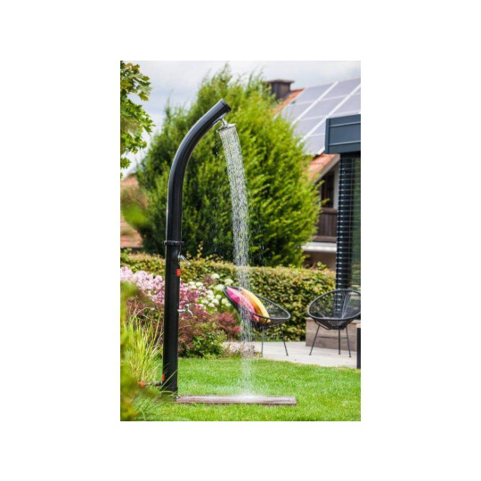 Solárna sprcha je ideálny zdroj teplej vody bez použitia elektriny. Voda je v solárnom zásobníku jednoducho ohriata slnkom až na 60°C. K tomu prispieva aj čierne prevedenie sprchy. Sprcha je vybavená zmiešavacou páčkovou batériou, aby ste si nastavili teplotu vody, ktorá vám bude vyhovovať.