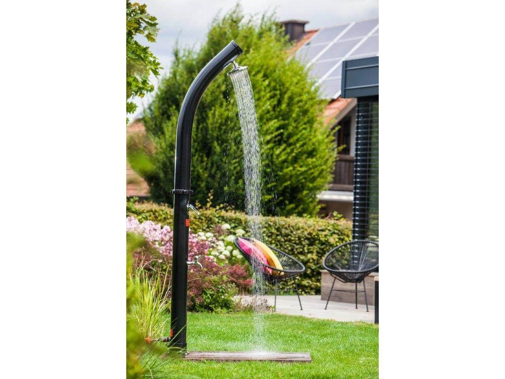 Solárna sprcha je ideálny zdroj teplej vody bez použitia elektriny. Voda je v solárnom zásobníku jednoducho ohriata slnkom až na 60°C. K tomu prispieva aj čierne prevedenie sprchy. Sprcha je vybavená zmiešavacou páčkovou batériou, aby ste si nastavili teplotu vody, ktorá vám bude vyhovovať.