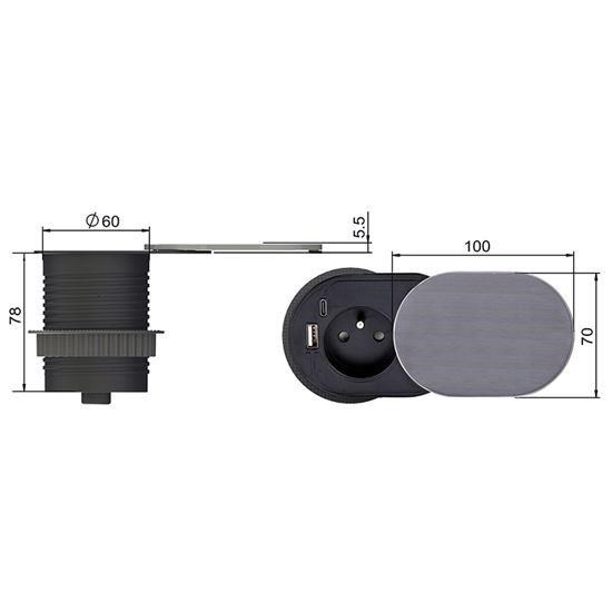 Vestavná elektrická zásuvka je praktickým doplnkom pre pracovné dosky a stoly v domácnostiach, kanceláriách alebo ďalších priestoroch. Je vybavená jednou štandardnou zásuvkou 230V/16A s detskou poistkou a modernou USB rýchlonabíjačkou. USB-A port podporuje technológiu Quick Charge 3.0, zatiaľ čo USB-C ponúka Power Delivery s maximálnym výkonom 20W. To umožňuje rýchle a efektívne nabíjanie všetkých moderných zariadení, od telefónov po tablety.
