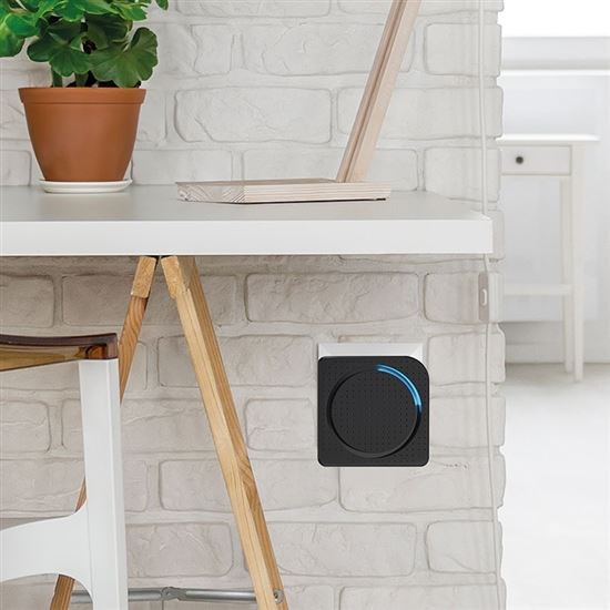 jeden zvonček zapojený do zásuvky a druhý prenášateľný na batérie.