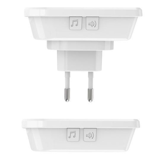 jeden zvonček zapojený do zásuvky a druhý prenášateľný na batérie.