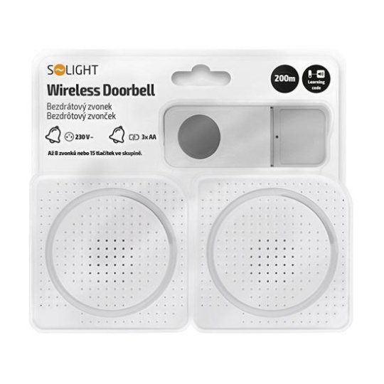 Solight 2x bezdrátový zvonek, do zásuvky + bateriový, 200m, bílý, learning code