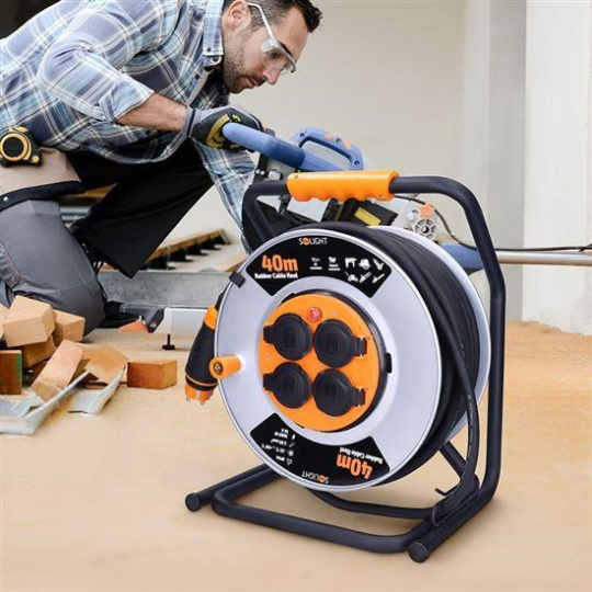 Cievka umožňuje zapojiť až štyri elektrické zariadenia a vďaka priemeru vodiča 2,5 mm2 zvládne zaťaženie až 3 680 W (16 A / 230 V~) po dlhú dobu. Kábel dĺžky 40 m umožňuje flexibilnú prácu bez obmedzení v mnohých profesiách. Samovoľnému navíjaniu bráni brzda pre aretáciu. Navijak má stabilnú konštrukciu, kovové telo cievky zabezpečuje dlhú životnosť, jednoduchú manipuláciu a spoľahlivosť pri používaní. Tento profesionálny predlžovací kábel je vybavený tepelnou poistkou, ktorá bezpečne ochráni všetky pripojené zariadenia pred prehriatím. Ak sa teplota predlžovacieho kábla vo vnútri cievky dostane nad stanovenú hranicu tepelnej poistky, prívod elektriny do zásuviek sa okamžite prerušuje. Vďaka tejto poistke nedôjde k ich poškodeniu a ochráni vás pred úrazom.