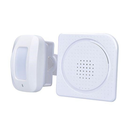 hlásič pohybu/gong s bezdrôtovým senzorom - PIR čidlo automatický režim: vyšle signál pri detekcii pohybu hlasitost: 65 - 80 dB(A) dosah signálu:max. 40m bez prekážok operačný rozsah: detekcia pohybu: 0-8m uhol záberu: 15° vertikálne uhol záberu: 100° horizontálne 36 nastaviteľných melódií 3D otočný stojan senzora, montážne otvory na stenu napájanie: prijímač: 3 x AA alkalické batérie (nie sú súčasťou balenia) senzor: 3 x AAA alkalické batérie alebo externá USB nabíjačka 5V DC (nie sú súčasťou balenia) vhodný pre obchody, firmy, kancelárie farba: biela
