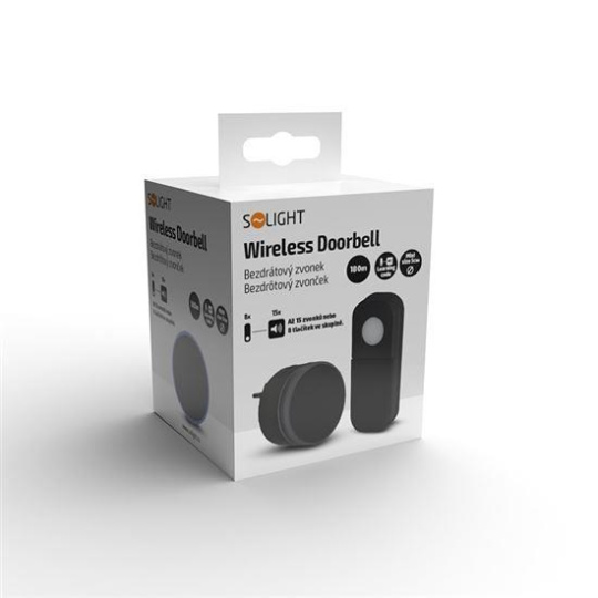 Solight bezdrátový mini zvonek, do zásuvky, 180m, černý, learning code